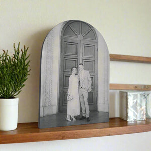 Preserve memories in a playful way with our Arched Laser Engraved Photo Canvas! This custom canvas print features laser engraved photos, creating a unique and quirky piece for your family photos, pet photos, and memorial photos. Keep cherished memories close in a fun and modern way.
