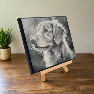 Honor your furry (or human) loved one with a unique Laser Engraved Cassic Photo Canvas! Our expert laser engraving adds a personal touch to your family or memorial photo, making it truly one-of-a-kind. Preserve precious memories in a playful, unconventional way.