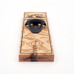Easily crack open a cold one with this custom-made Hickory Personalized Mechanic Bottle Opener. Made from durable hickory and metal, this laser-engraved opener is highly accurate and comes with hardware for quick installation. With the option to personalize it with 16 characters (including spaces), it makes a unique and functional gift.
