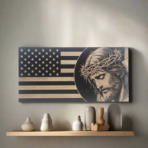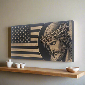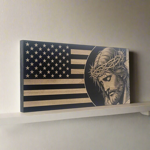 Jesus on Cross Engraved Wooden American Flag - LEF003