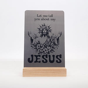 Let Me Tell You about My Jesus Aluminum Composite Shelf Sign