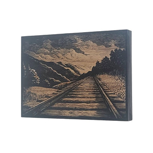 Add a touch of rustic charm with this Railroad Tracks Engraved Wooden Sign. Crafted from smooth Aspen hardwood and laser engraved for crisp detail, it comes ready to hang with a sawtooth hanger. Choose from three sizes—5"x7", 12"x16", or 18"x24"—perfect for brightening up any indoor space. Each sign is sold individually and typically ships within 7 to 14 days. Let this playful piece bring a bit of vintage railroad spirit to your walls!