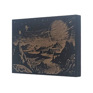Sci Fi Landscape with Planets Engraved Wooden Sign - LES012