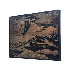 Vintage Hot Air Balloon over Mountains Engraved Wooden Sign - LES021