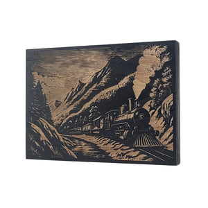 Vintage Steam Train in Mountain Landscape Engraved Wooden Sign - LES013